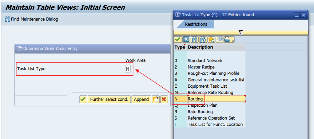 - 작업영역 선택 창에서 직무리스트 유형(Task List Type)을 공정(Routing) 'N'을 선택합니다.