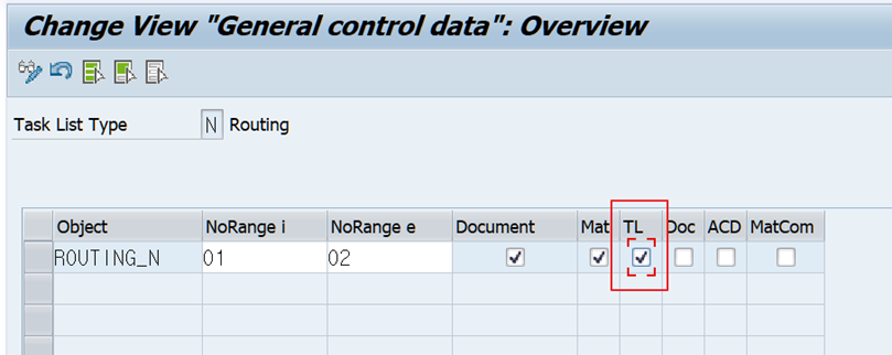 - Object의 ROUTING_N 항목에서 'TL'(PID task list) 필드의 체크박스를 해제합니다.