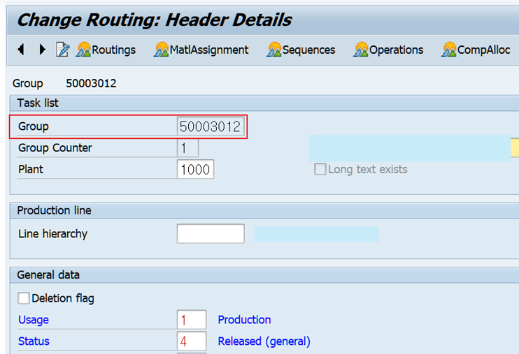 - 참고로 공정 마스터의 그룹번호는 마스터 헤더(header) 부분에서 확인 가능합니다.