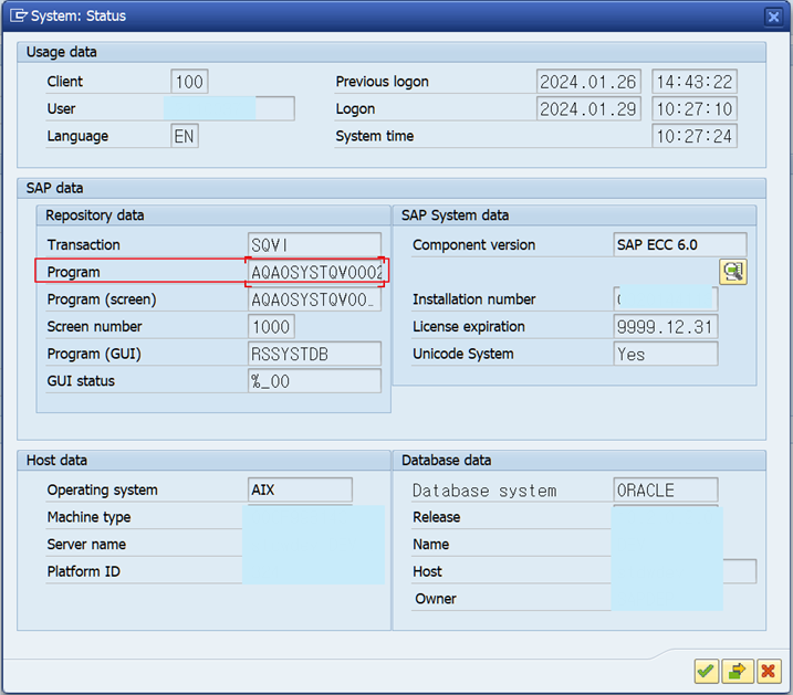 - T-code 생성을 위해 퀵뷰 프로그램의 정보를 확인합니다.