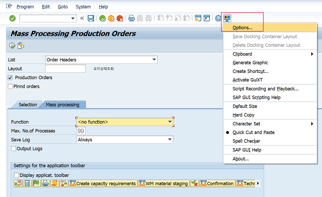 SAP T-code : COHV 화면을 예를 들어 설명하겠습니다.