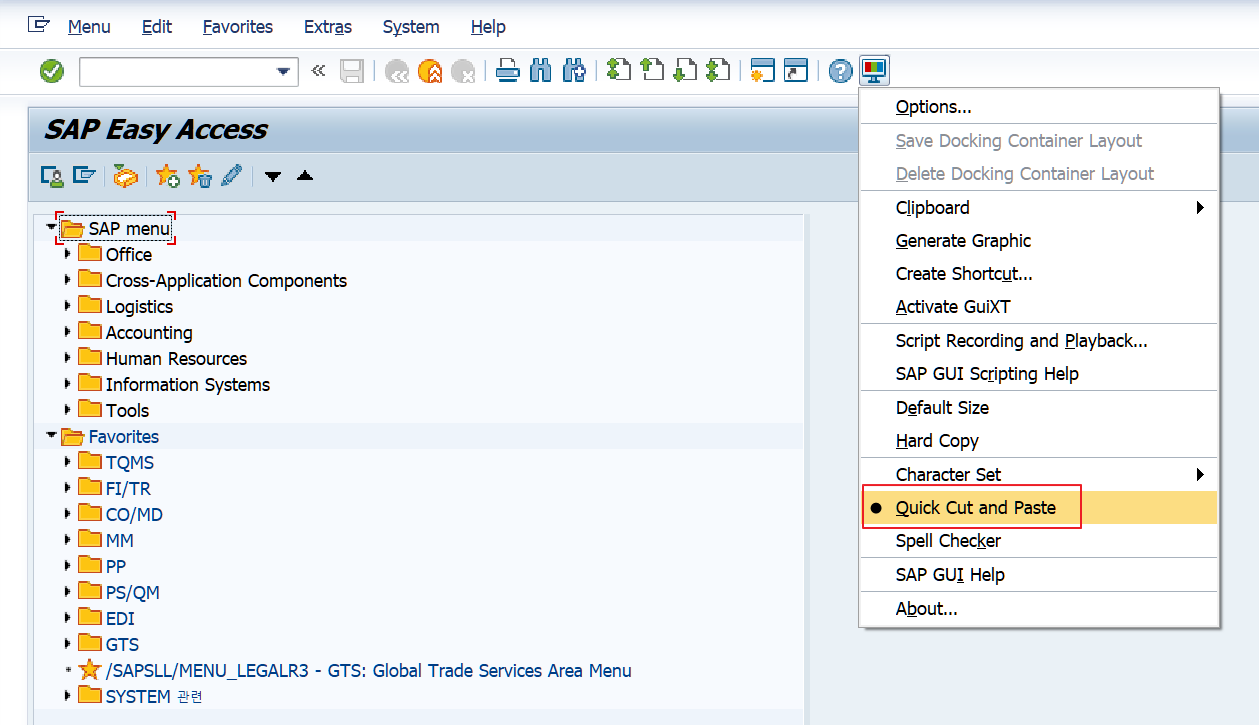 - SAP GUI 옵션은 두 군데에서 확인할 수 있습니다.
