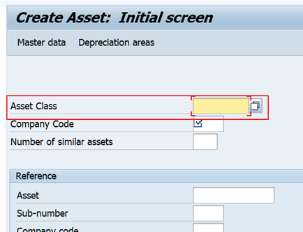 - 신규 자산 마스터를 생성하는 T-code AS01 화면에 보면 아래와 같이 자산 클래스(Asset Class)를 입력해야 합니다.
